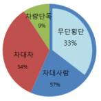 사망자는 차대사람 사고 57%, 차대차 34%, 차량단독 9% 순이고 무단횡단 보행자사망자 중에서도 60대 이상 어르신 사망자 비율이 56%에 달한다.