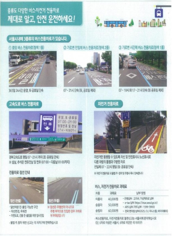 김정선 서울시 교통지도과장은 “전용차로가 설치 목적에 부합하는 효과를 지속적으로 거두려면 운전자의 준법의식이 필수적”이라며, “단순히 운행구간이나 시간을 오인해 적발되는 일이 없도록 승용차 운전자는 전용차로별 운영시간을 꼼꼼히 확인하고 협조해주시기 바란다.”라고 당부했다.