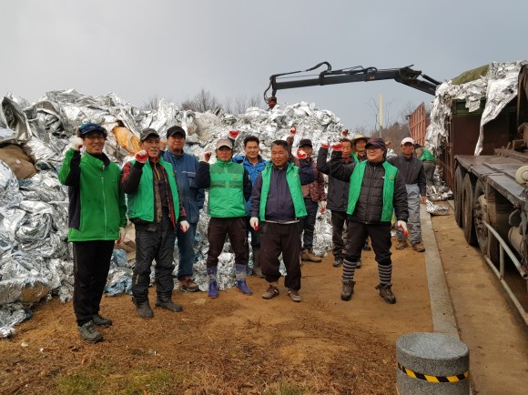 이날 행사에는 부석면 새마을지도자협의회 회원 20여명이 참여해 하천에 방치된 영농 폐자재와 제때 수거하지 않으면 농경지 주변에 방치되거나 바람에 날려 경관훼손과 송전설비 사고·고장의 원인이 되는 과수용 폐반사 필름 60여 톤을 일제히 수거했다.