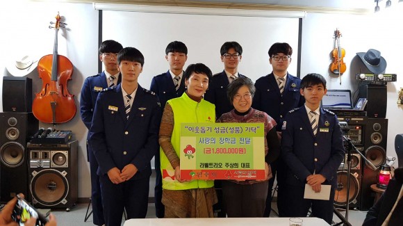 이날 전달식에는 김병호 경북항공고등학교장, 정옥희 영주시 사랑의 열매 나눔 봉사단장 등이 참석해 학생 6명에게 30만원씩 각각 전달했다.