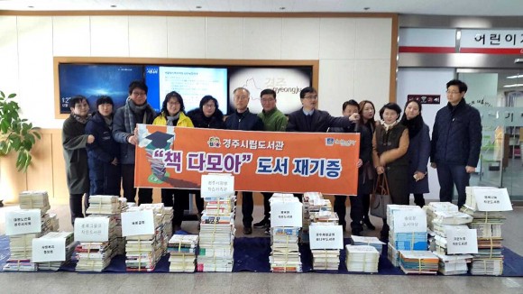 |  | | | ⓒ (주)영남도민일보 | | [영남도민일보] 정문용 기자 = 경주시립도서관(관장 최용태)에서는 13일 재기증 도서 1,100여권을 행복한작은도서관을 비롯한 관내 10개 기관에 전달했다. ‘책다모아’라는 이름으로 진행된 이번 행사는 재기증 받은 도서를 작은 도서관에 전달함으로써, 지식자원 재활용을 통한 지식정보격차를 해소하고 도서나눔문화를 확산함과 동시에 책 읽는 문화도시 조성에 기여하고자 실시됐다.