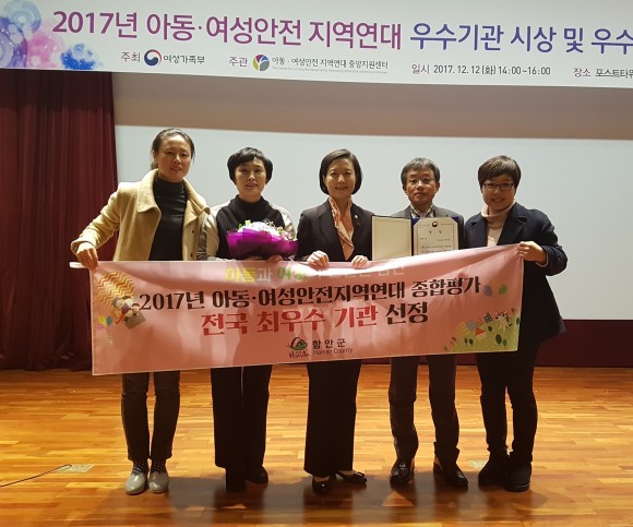 먼저 군은 여성가족부 주관 ‘2017년 아동·여성안전 지역연대 사업운영 평가’ 전국 군부 2년 연속 최우수기관으로 선정돼 지난 12일 서울 포스트타워에서 열린 시상식에서 여성가족부장관상을 수상했다.