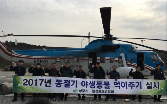 이날 행사에는 산림청 헬기 1대와 상주시 관계자 및 야생동물보호단체 회원 등 10여명이 야생동물용 사료 2,000㎏을 살포했고 읍·면에서는 자체계획을 수립해 관내 산 중턱에 야생동물 먹이를 뿌렸다.