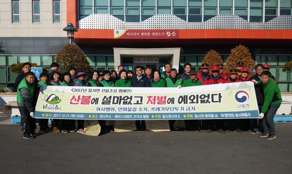 이날 캠페인은 산불발생 위험이 증가하는 건조한 겨울철을 맞아 산불예방 참여의식을 확산시키고자 마련돼, 칠서면사무소부터 에이스아파트를 거쳐 안국산까지 총 3.8km 구간을 대상으로 진행됐다. 참여자들은 에이스아파트 입구에 현수막을 펼쳐 주민들을 대상으로 산림 내 취사행위 안하기, 담배 안 피우기, 화기물 휴대 안하기 등의 산불예방 안전수칙을 집중 홍보 했으며, 산불예방 홍보용 로고송으로 마을·가두방송을 실시해 산불에 대한 경각심을 일깨웠다.