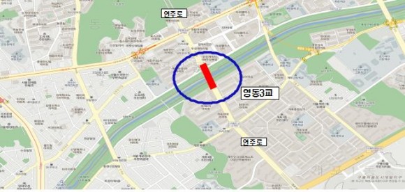 '86년 12월 준공된 영동3교는 '11년 긴급안전진단 결과 영동3교를 통행하는 중차량으로 인해 내구연한이 저하되고, 특히 노후로 인해 교량 상판 간격이 벌어짐에 따라 시는 '11년 5월부터 중차량 통행을 40톤에서 30톤으로 제한해 왔다.
