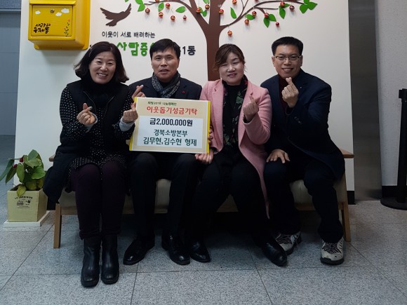 경북소방본부 김무현·수현 ‘의(義) 좋은 형제 소방관’ 이웃돕기성금 기탁