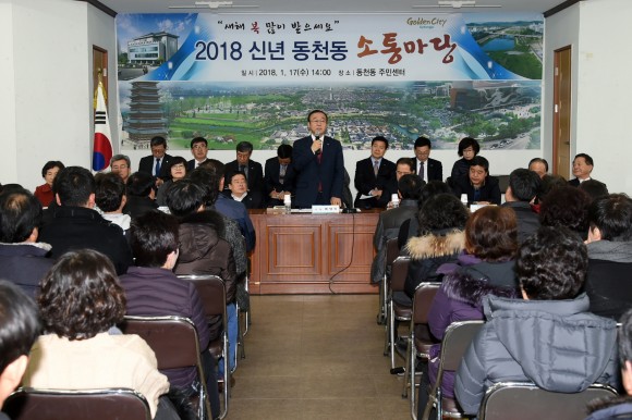 |  | | | ⓒ (주)영남도민일보 | | [영남도민일보] 정문용 기자 = 경주시가 17일 동천동주민센터에서 주민과의 격의 없는 대화의 장을 통해 지역 현안과 현장의 목소리를 듣는 ‘2018년 신년 소통마당’ 두 번째 마당을 열었다.
