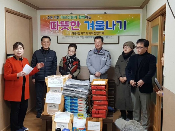 |  | | | ⓒ (주)영남도민일보 | | [영남도민일보] 김창기 기자 = 가흥1동지역사회보장협의체(위원장 이진호)는 지난 17일(수) 관내 폐지 줍는 어르신 10여명을 모시고 따뜻한 겨울나기를 위한 방한용품 등을 지원했다.