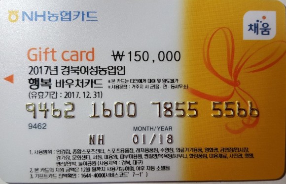 시는 희망자의 신청을 받아 대상자 확정 후 농협 시지부를 통해 경북 여성농업인 행복바우처 카드를 발급한다. 발급된 카드는 전국에서 사용 가능하다. 카드잔액 확인은 농협 콜센터(1644-4000)로 하면 된다.
