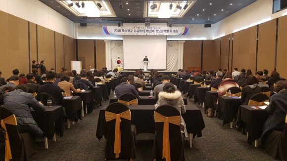 이번 워크숍은 영남권역 선도교육청인 경북교육청이 주관했으며, 2018년 특수학교 자유학기제 전면 시행에 대비해 학교 여건과 장애특성, 장애정도를 반영한 운영 방안을 모색하고 담당자 역량 강화와 정보 공유의 장을 갖고자 마련됐다.
