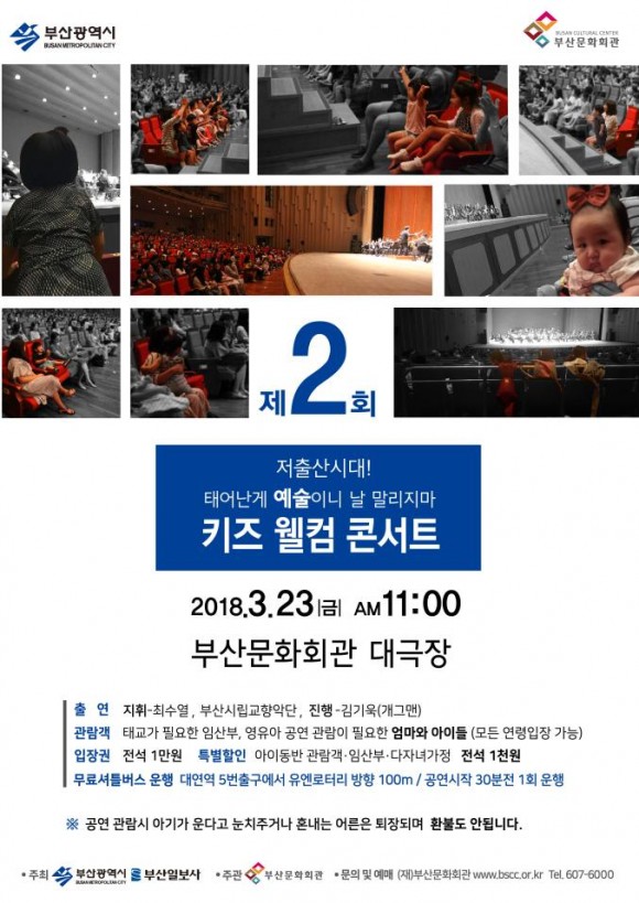 ‘저출산 시대, 태어난 게 예술이니 날 말리지 마!’라는 캐즈 프레이즈에서 알 수 있듯 부산시는 ‘공연도 예술이지만 생명의 탄생은 최고의 예술이니 아이가 좀 울면 어떠냐’는 인식 아래 아이와 함께 볼 수 있는 ‘키즈웰컴 콘서트’를 마련했다.