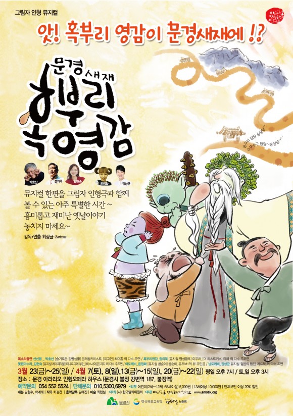 |  | | | ⓒ (주)영남도민일보 | | [영남도민일보] 김재근 기자 = 인형오페라하우스로 탈바꿈한 문경 구 불정역(등록문화재 326호)에서 2018년 시즌오픈공연으로 그림자 인형뮤지컬인 <문경새재 혹부리영감>을 선보인다. 오는 22일 시사회를 시작으로 3월 23일부터 4월 22일까지 공연이 예정되어 있다.