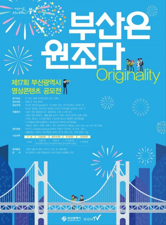 올해 공모전의 주제는 ‘부산은 원조다!’ 부산에만 있는 것, 부산에서 시작된 것 등 이른바 원조(Originality)를 소재나 주제로 하여 부산의 정체성, 독창성, 자부심 등을 압축적이고 창의적으로 표현하면 된다.
