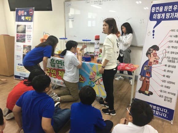 지난 27일에는 글로벌 선진학교 전교생 340명을 대상으로 흡연예방교육을 실시했다. 이날 교육은 체험부스 4파트로 구성해서 다양한 시청각 교구를 활용해 담배의 위해성을 알리고 청소년들이 흡연에 대한 올바른 가치관과 태도가 형성될 수 있도록 구성됐다.