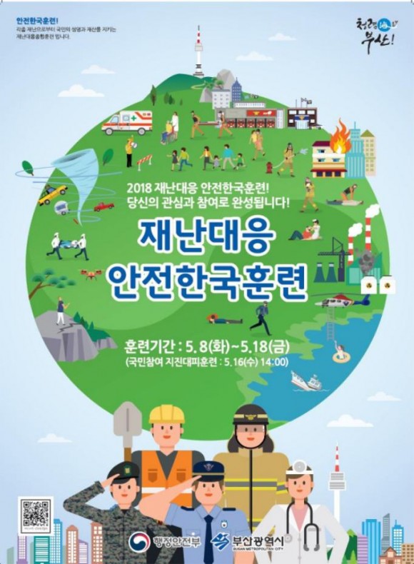 5월 16일에는 전국적으로 실시되는『전국민 지진대피 훈련』이 부산시 전역에서 실시될 예정이며, 지진 발생 시 시민 행동 요령ㆍ유의 사항 숙지, 지진 옥외 대피소를 확인하는 등 훈련을 통해 시민들의 지진 재난 대응능력을 제고할 계획이다.