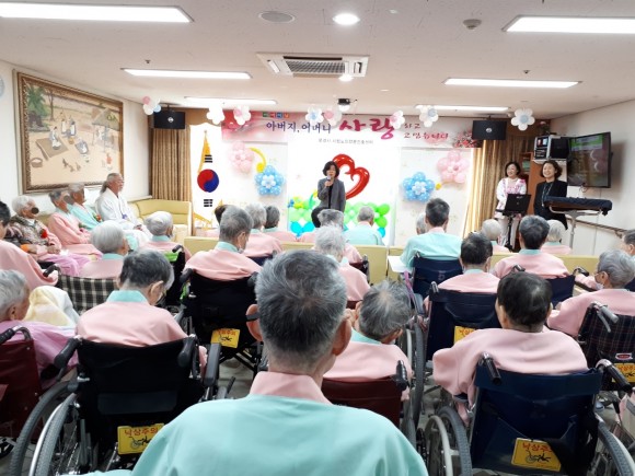 이날 행사에는 전 직원이 어르신들의 가슴에 카네이션 꽃을 달아드리며 사랑을 전달하고, 부모님께 드리는 편지 낭독, 보호자가 들려주는 대금․섹스폰 연주, 흥겨운 레크리에이션 등으로 간호센터에서 인연이 된 가족들이 함께 마음을 나누는 특별한 시간을 가졌다.
