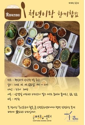 또 6월 5일(화) 저녁 7시엔 서울혁신파크 상상청 5층 옥상에서 청년을 위한 삼겹살 파티인 ‘청년이랑 한끼합쇼’도 개최한다. 참가비는 식사비 1만원으로 매우 저렴하다.