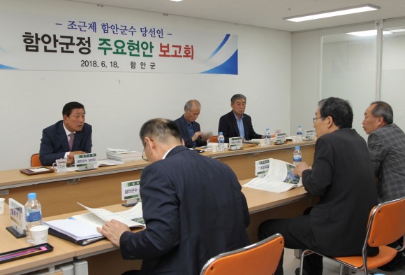 |  | | | ⓒ (주)영남도민일보 | | [영남도민일보] 영남도민일보 기자= 함안군은 18일 오후 2시, 청소년수련관에서 조근제 함안군수 당선인, 이일석 군수 권한대행, 주요 실·과장 및 담당 등 10여 명이 참석한 가운데 ‘군정 주요현안 보고회’를 개최했다.