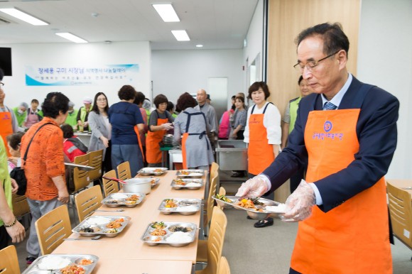 이날 첫 행선지로 금오종합사회복지관을 찾은 장세용 구미시장은 결식우려 어르신들을 위해 무료급식을 하고 있는 나눔관에서 취임인사와 함께 배식봉사를 하며, 구미시민 모두가 행복한 구미를 만들기 위해 최선을 다하겠다며 시설 종사자들을 격려하는 등 나눔의 정을 몸소 실천 하였다.