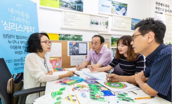 유족들의 위로와 치유를 위한 미술심리상담으로 전문 자원봉사자의 도움 속 진행된 <내 마음을 그려주는 심리 스케치>는 ‘자유주제 그림 그리기’, ‘도안 채색’을 통해 별도의 신청‧접수 절차 없이 유족들의 심리적 안정을 돕고 있다. 상담을 받은 유족들은 “화장시설에서 이렇게 전문적인 심리 상담을 통해 조금이나마 슬픔을 위로받을 수 있어서 감사하다”며 고마움을 표했다.