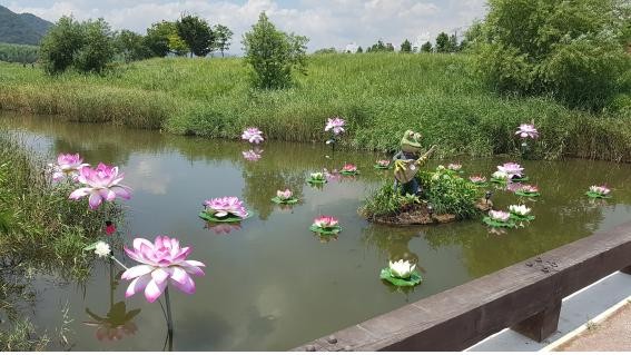 울산시는 태화강국가정원 지정에 맞춰 태화강지방정원 내 실개천변에 개구리 캐릭터, 화초류 등으로 부유식 수생화단을 조성했다.
