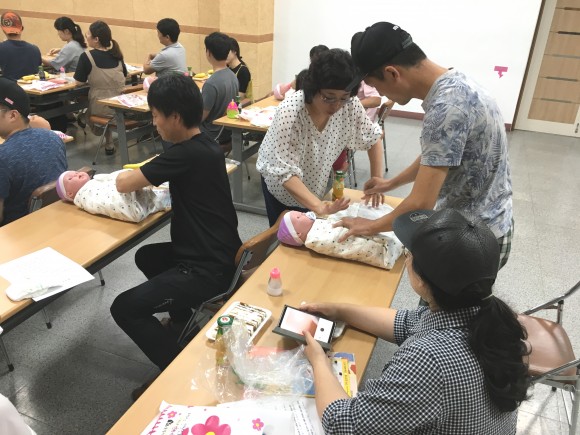 맞벌이 가정과 출근하는 아빠를 위하여 교육은 저녁 19시에 운영되었으며, 「부부가 함께하는 육아」라는 주제로 분만준비, 모유수유, 신생아 목욕, 기저귀 갈기 등을 실습과 병행 하여 실전에 활용할 수 있도록 하였다.