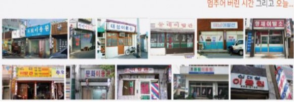 한편 동네이발소는 이발의 달인들이 운영하지만 빛바랜 간판, 흰 가운, 낡은 사인볼이 연상되며 시대의 변화에 뒤쳐져 침체의 길을 가고 있다.
