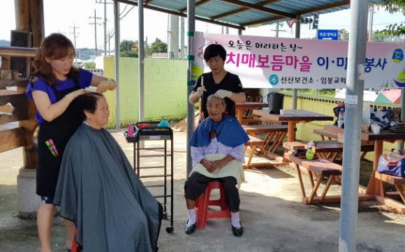 |  | | | ⓒ (주)영남도민일보 | | [영남도민일보] 김옥순 기자 = 선산보건소(소장 소지형)는 9월 9일 구미시 산동면 임천리 새마을회관에서 치매보듬마을 이미용 봉사활동을 실시하였다.