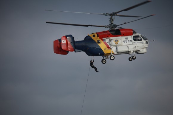 이날, 윤병두 동해해경청장을 비롯한 속초, 동해, 울진, 포항서장등 주요간부 16명은 현장에서 주로 이루어지는 구조활동인 잠수구조, 레펠, 헬기 호이스트 구조, 해상구조(바다수영) 훈련을 실시하였다.