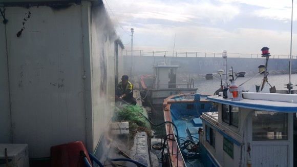 |  | | | ⓒ (주)영남도민일보 | | [영남도민일보] 홍인환 기자 = 포항해양경찰서는(서장 맹주한)는 10월 8일 오후 1시 30분경 포항시 남구 구룡포읍 삼정항 육상부두 창고화재 발생을 초기발견하고 진압했다고 밝혔다.