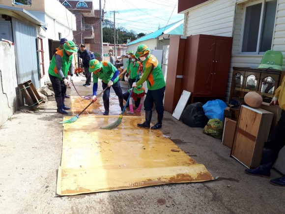 이어 고시장은 자원봉사단체회원들과 함께 침수가구 복구 작업에 구슬땀을 흘렸다.