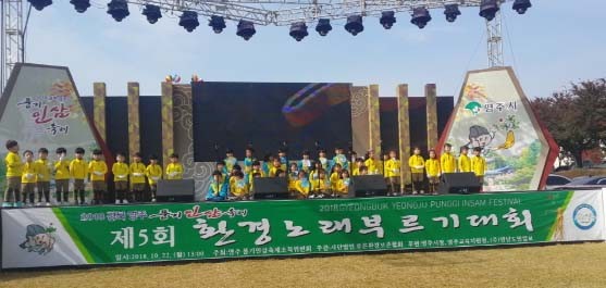 |  | | | ⓒ (주)영남도민일보 | | [영남도민일보] 김창기 기자 = 사단법인 푸른환경보존협회 주관 2018년 영주풍기 인삼축제에서 지난 22일 풍기인삼축제장 특설무대 제5회 환경노래 부르기 대회를 개최했다.