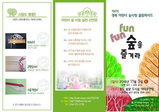 어린이들의 바른 인성 고취를 위한 산림교육 확산과 숲 사랑 실천을 위한 행사로, 숲 이야기 경연, 자연물 만들기 체험, 숲 탐험, 숲 퀴즈, 숲속 글짓기, 숲속 보물찾기, 아름다운 숲 합창하기, 학생들의 K-pop Dance, 버블공연, 동물 탈, 숲 체조등 다양한 레파토리로 숲을 통해서 어린들의 정신영역을 확장하고 자연과 더불어 어린들의 정서와 심신안정에 기여할 될 것으로 기대된다.