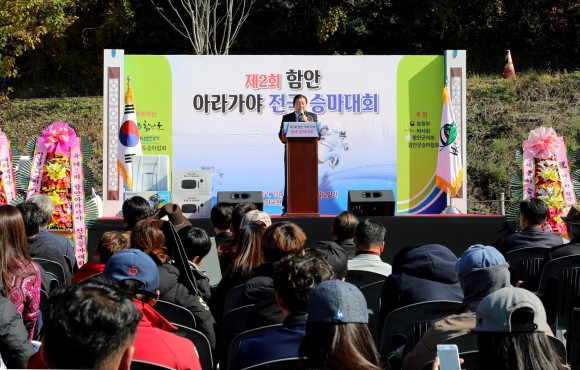 10일 개회식에서 조근제 군수는 환영사를 통해 “함안을 방문해 주신 유소년 선수와 승마 동호인 여러분께 감사드린다”며 “승마대회가 성공적으로 치러져 승마산업이 한층 발전하는 계기가 되기를 바란다”고 말했다.
