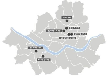 이 밖에 사업지인 지하철 4호선 성신여대입구역 2번 출구 주변과 미아역 5번 출구 주변, 길음역 4번 출구 주변, 영등포구 영등포시장교차로는 돈암제일시장, 길음시장, 영등포시장 등 재래시장과 한방병원 등을 이용하는 어르신들의 무단횡단 사고가 많은 편이다.