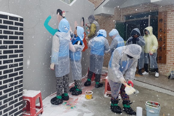 이번 벽화그리기 봉사는 가흥1동 지역사회보장협의체(위원장 이진호)와 전우노인회, 지역봉사단과 주민 등 30여명의 자원봉사자들이 참여했다. 영주청년봉사단과 대학생이 재능기부를 펼쳤고, 마을어르신과 지역주민들은 힘을 보탰다.