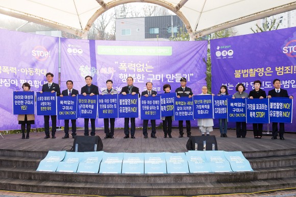 |  | | | ⓒ (주)영남도민일보 | | [영남도민일보] 김옥순 기자 = 구미시(시장 장세용)는 11월 26일 오후 3시 구미역 후 광장에서 구미시, 구미경찰서, 구미교육지원청, 영남여성장애인성폭력 상담소, 여성단체협의회, 자율방범대를 비롯한 20여개의 유관기관·단체 및 시민 200여명이 참여한 가운데 성폭력·가정폭력 추방캠페인을 개최하였다.