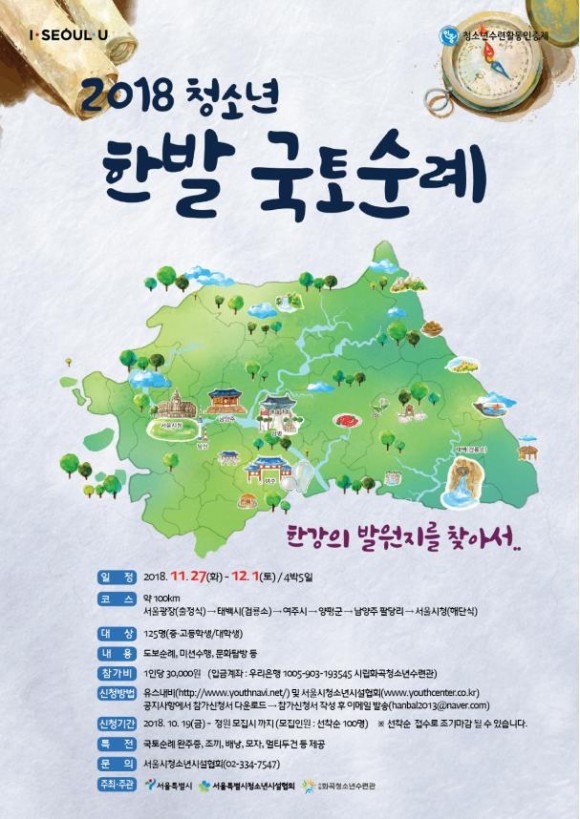 서울시 청소년 한발 국토순례’는 이번이 4회차로 한강의 발원지인 태백에 위치한 검룡소를 시작으로 한강의 물줄기를 따라 아름다운 자연을 관찰하고 역사유적지를 방문하며 서울로 돌아오는 프로그램이다.