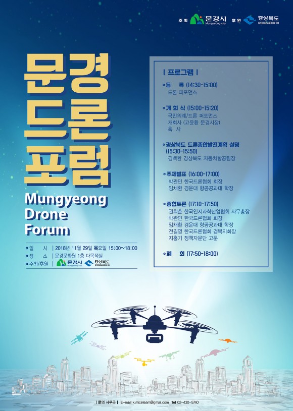 고윤환 문경시장은 “급속히 변하는 ICT 분야에서, 선점효과가 특히 중요하다”라며, 이번 포럼에서 “드론산업을 비롯한 4차산업혁명에 대한 선제적 대응 방안 및 ‘전통과 미래가 공존하는 도시 문경’을 위한 다양한 의견 제시를 기대한다”라고 말했다.