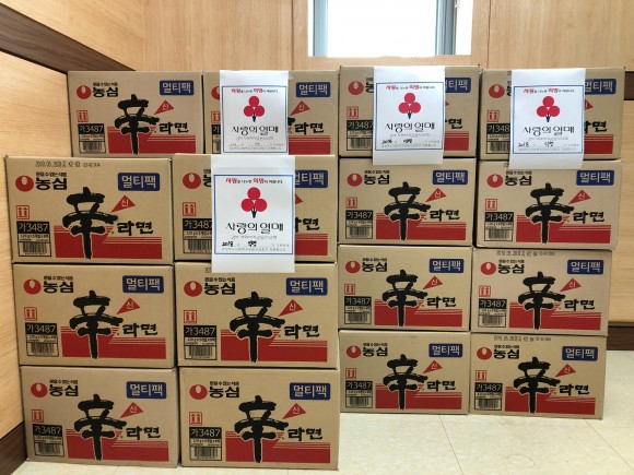 라면 38박스 100만원 상당의 현물 기탁