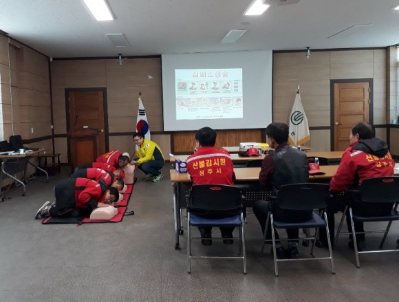 이날 교육은 산불로 인해 응급상황이 발생하기 쉬운 산불감시원을 대상으로 국민응급처치교육(EFR)센터 강사를 초빙하여 실시하였으며, 간단한 이론설명과 함께 신체모형을 통한 실습을 수차례 반복하여 산불감시원들이 심폐소생술을 효과적으로 체득하였다.