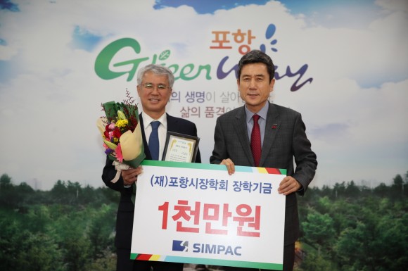 |  | | | ⓒ (주)영남도민일보 | | [영남도민일보] 홍인환 기자 = ㈜SIMPAC(대표 송효석)에서 지난 2010년부터 4회에 거쳐 장학기금 4천만원을 기탁한데 이어 올해에도 장학기금 1천만원을 기탁했다.