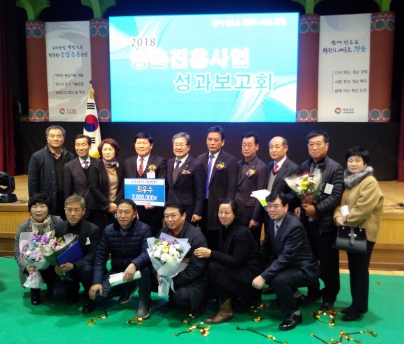 |  | | | ⓒ (주)영남도민일보 | | [영남도민일보] 영남도민일보 기자= 함안군은 지난 19일 경상남도농업기술원이 주최한 ‘2018년 농촌진흥사업 성과보고회’에서 종합평가 최우수기관으로 선정돼 도지사표창을 수상했다.