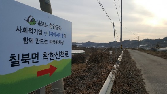 관내 사회적기업과 함께한 이번 민·관 협력 프로젝트는 칠북면 이령제방에서 펼쳐졌다. 주민들이 이용하는 산책로에 조명이 없어서 불편을 겪었는데 군은 ㈜이세이빙에서 기부한 태양광 LED 전등을 설치했다.