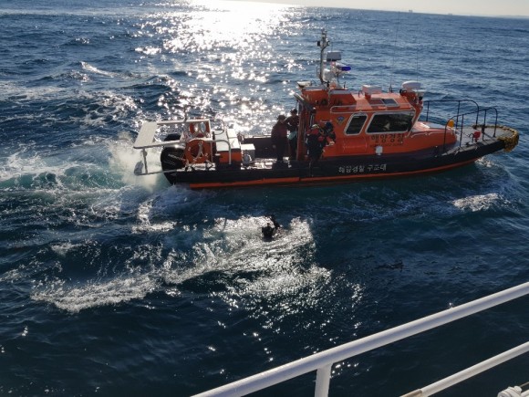 이번 훈련은 선내 고립자 발생 상황을 가정하여 구조대 보트의 고속 기동 운항능력을 확인하고, 현장 도착 이후 즉시 입수하여 신속히 인명을 구조하는 능력을 중점적으로 점검했다.