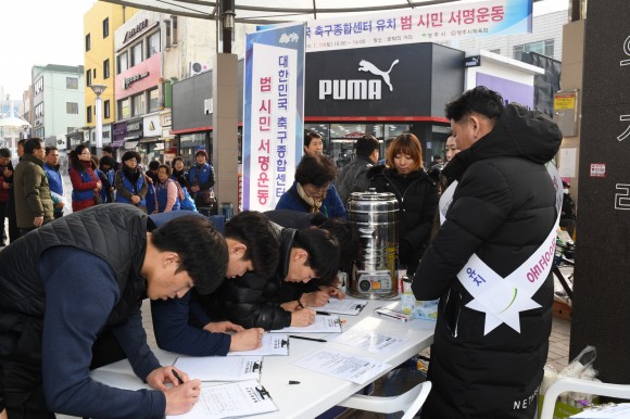 시는 지난 10일 장욱현 영주시장이 대한축구협회에 대한민국 축구종합센터 유치 신청서를 제출한 이후 19일부터 범시민 현장 서명운동에 나섰다.