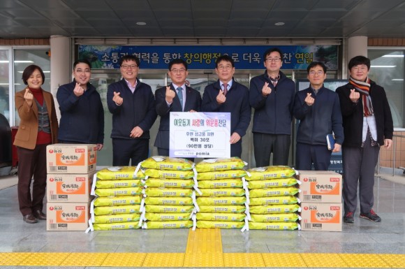 이날 POMIA 이종봉 원장을 비롯한 직원들은 연일읍 행정복지센터를 찾아 불우이웃돕기 후원품으로 백미 10kg 30포를 전달하고 지역 식당 등에서 지역경제 살리기 캠페인을 펼쳤다.
