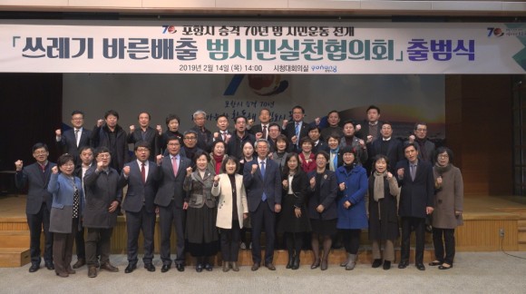 |  | | | ⓒ (주)영남도민일보 | | [영남도민일보] 홍인환 기자 = 포항시는 올해를 쓰레기 바른배출 원년으로 정하고 14일 시청 대회의실에서 「쓰레기 없는 Green포항」프로젝트 추진 MOU 38개 시민단체 대표를 위원으로 한 쓰레기 ‘바른배출 범시민실천협의회’를 출범했다.