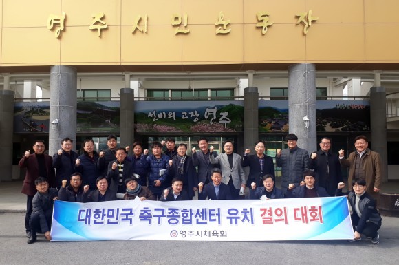 시는 축구종합센터 유치 분위기 확산과 결의를 다지기 위해 지난 20일 시청 강당과 시민운동장에서 영주시체육회 주관으로 결의대회를 개최했다.