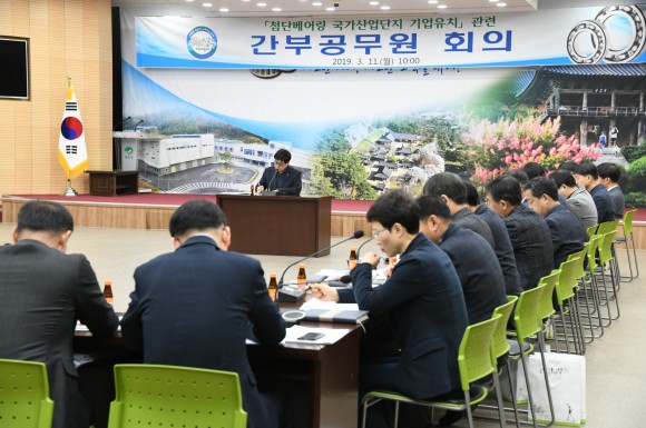 시는 11일 시청 강당에서 과장급 간부공무원(실‧단‧과‧소장) 40여명을 대상으로 베어링 국가산업단지 기업유치 관련 회의를 개최하고 전국 400여개의 베어링 기업별 전담 간부공무원을 지정했다.